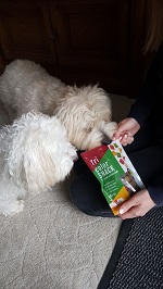 When the pack is empty, we simply sprinkle the crumbs that are left in the bag over the usual food so that the dogs can enjoy a tasty topping.